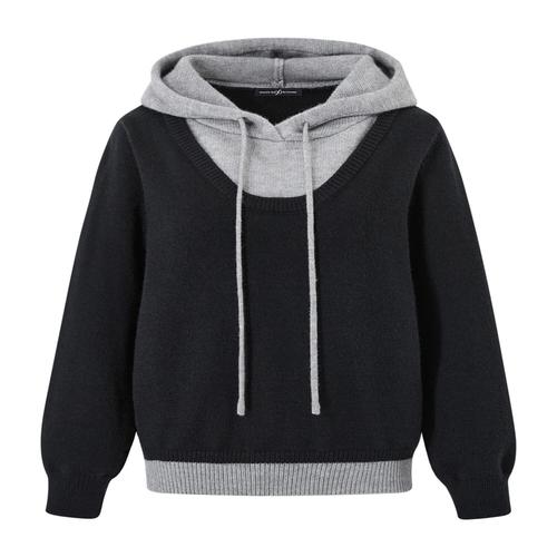 [나인식스뉴욕]레이어드 배색 후드 오버핏 긴팔 니트 (NP4KT063L0)