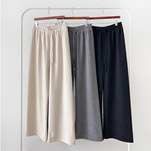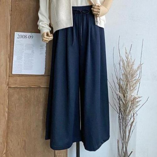 [옷자락]여성 캐주얼 단색 레이온 와이드핏 밴딩 바지