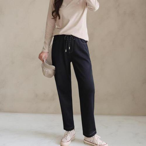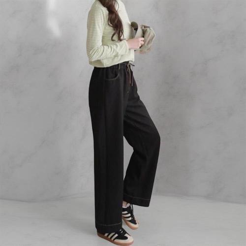 [옷자락] 여성 캐주얼 허리스트링 레이온 스판 일자 밴딩 데님