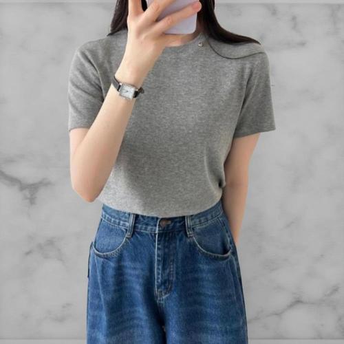 [옷자락] 여성 레이온 면 단색 실버참 라운드넥 반팔티