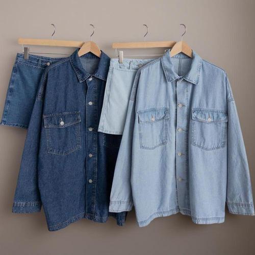 [미라클세븐]여성 오버핏 청남방 세트 포켓 랩 스커트 바지