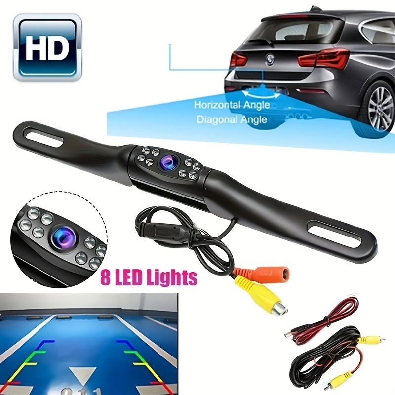 TEMU 자동차 금속 백업 카메라, 후방 플레이트 리버스 카메라 범용 픽업 트럭 및 SUV 완벽한 와이드 앵글 8LED 라이트 야간 시야