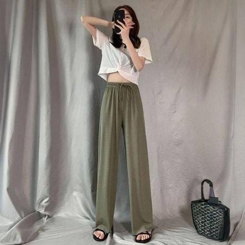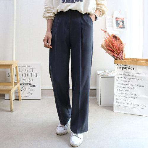 여성 새깅 로우 웨이스트 핀턱 와이드 슬랙스 바지