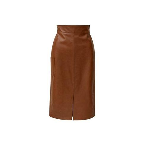 에버리씽 여성 레더 H 가죽 미디 스커트 Q124