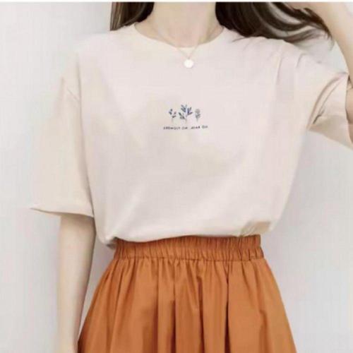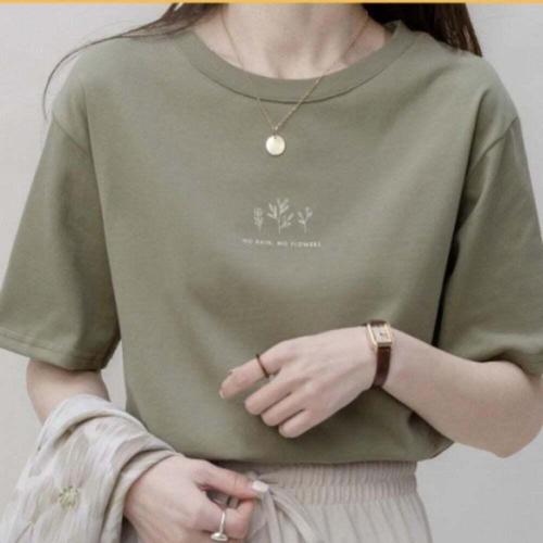 TEMU 여성용 우아한 심플 라운드넥 프린트 반팔 티셔츠