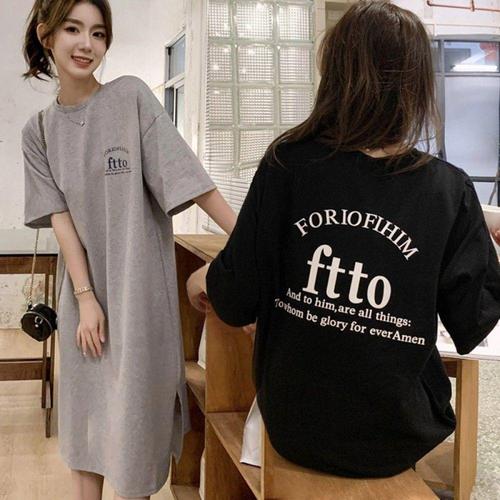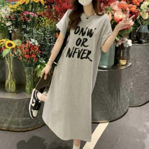 [오너클랜]인기상품 여성 심플 루즈핏 오버핏 레터링 반팔 롱 원피스 여름 캐주얼 데일리 [WFLLA9O_260304]