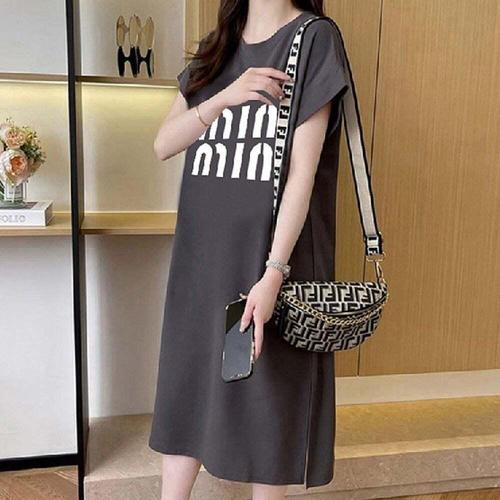 [오너클랜]인기상품 여성용 여름 반팔 원피스 영문 레터링 밑단 트임 쾌적한 소재 드레스 [WFLIGCN_260301]