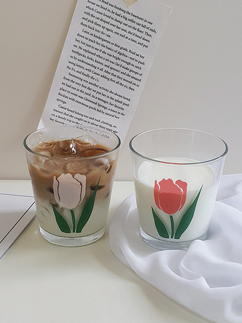 [퍼니키친] 레트로 튤립 카페유리컵 홈카페컵