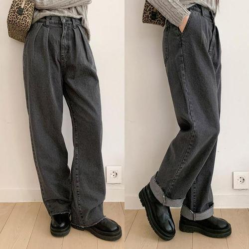 스베글 와이드 워시드 스트레이트 밴딩 레트로 데님팬츠 여성