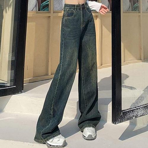 [셀러허브_여성트랜드패션]ONM 스타일리시한 여성 통 청바지 빈티지 레트로 데님