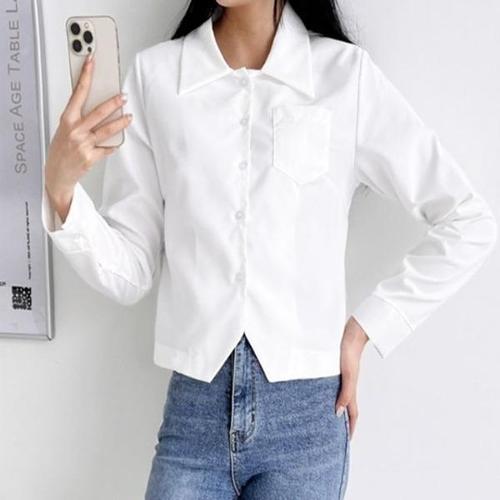 [엄지척]여자카라넥크롭셔츠 심플 크롭셔츠블라우스(화이트)_19652080_667501