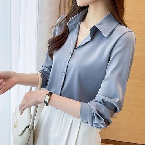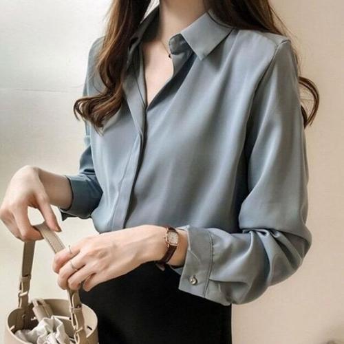 [엄지척]여성 새틴 심플 카라 블라우스 셔츠_19660043_667501