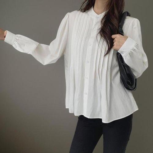 [신상오픈런]여성 핀턱 헨리넥 심플 컬러 블라우스