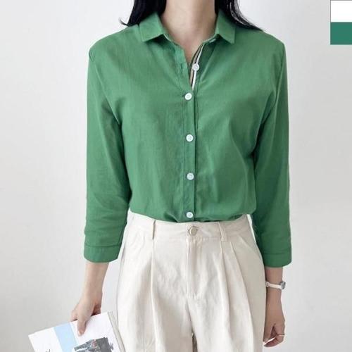[엄지척]출근룩 심플한 린넨 8부 셔츠 블라우스 20대코디_19659262_667501