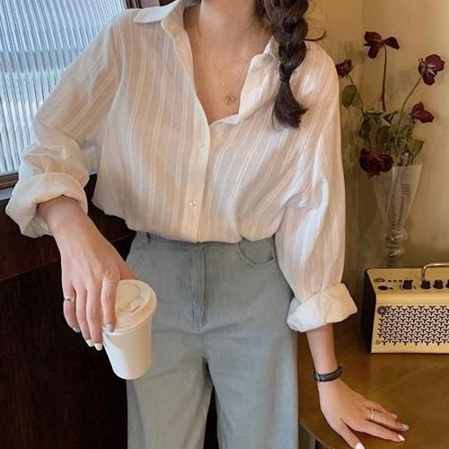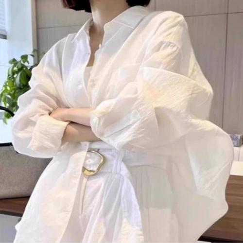 [엄지척]여성 오버핏 긴팔 심플 퓨어 화이트 셔츠 블라우스_19660719_667501