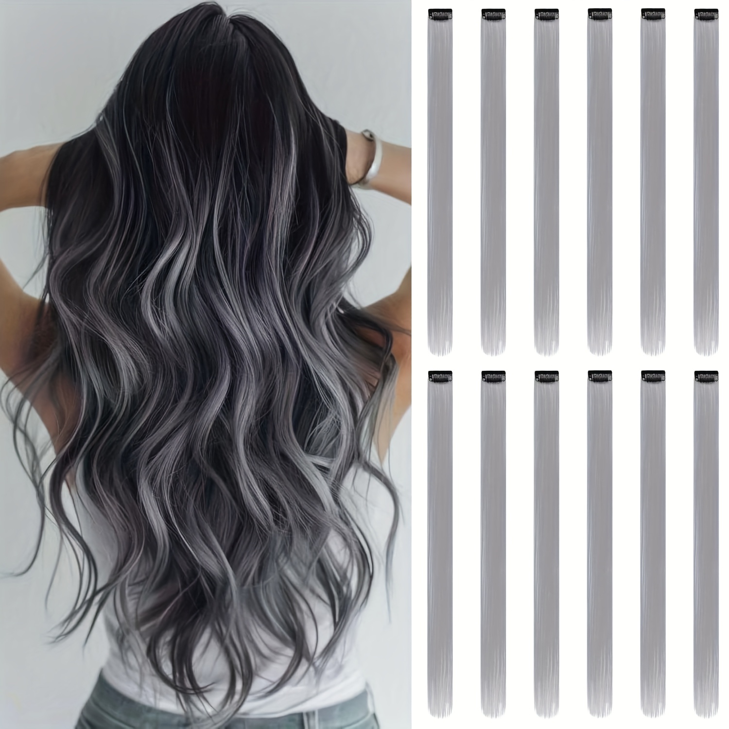 TEMU 12팩 롱 22인치 합성 헤어 익스텐션 클립인 헤어 익스텐션 - 내추럴 브라운, 블론드, 그레이, 화이트, 다크 브라운, 블랙, 브라운, 다크 그레이, 블론드, 체스트넛 브라운, 오번, 바이올렛 - 여성용, 파티, 일상 사용, 볼륨 & 길이 - 쉬운 적용, 손상 없는 제거, 모든 베이지 톤에 적합