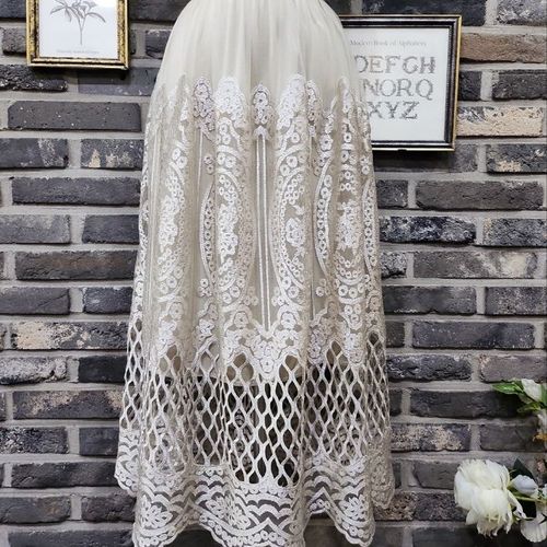 로맨틱 자수 펀칭 레이스 밴딩 스커트