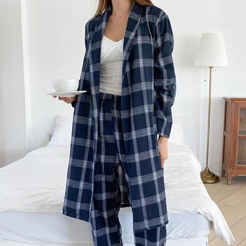 [리엘라]로하네 체크 패턴 로브 밴딩팬츠 홈웨어 세트