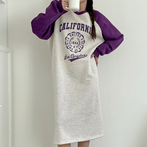 씨샵인더룸 / 로스앤젤리스 기모 자수 레터링 트임 후드 긴팔 롱 원피스 3color