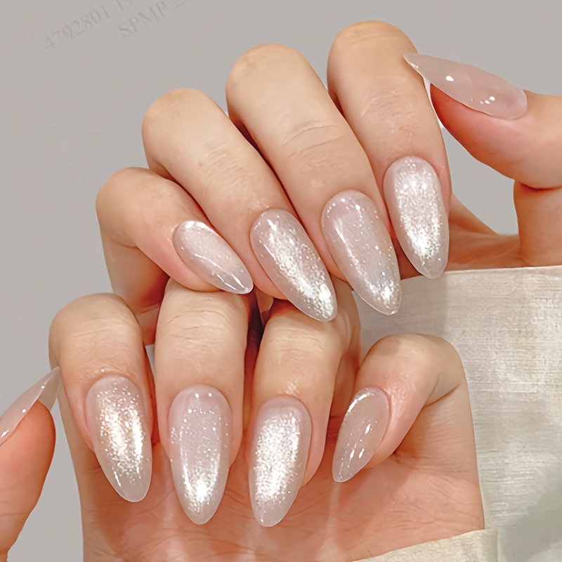 TEMU 10개 수제 네일 아트 세트, 뾰족한 아몬드 모양, 그레이 캣 아이 글리터 효과, 중간 길이, ABS 소재, 네일 아트 용품|글리터 네일 효과|내구성 있는 네일 세트, 네일 아트 키트|네일재료