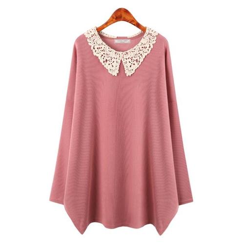 [허밍퍼플]여성용 2737-코르 레이스 카라T 긴팔 티셔츠 세련미 체형커버 큰옷 예쁜 빅사이즈 여성의류