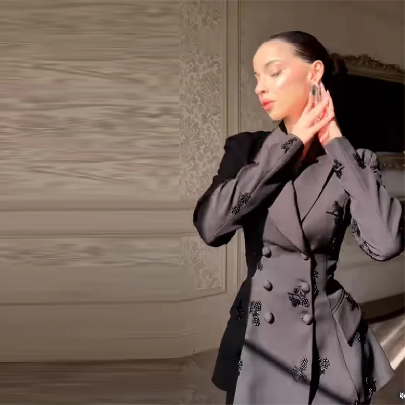 2025년 여성 신상 패션 디자인 입체 컷 하이 칼라 슬림 수트 재킷 & 캐주얼 바지 세트