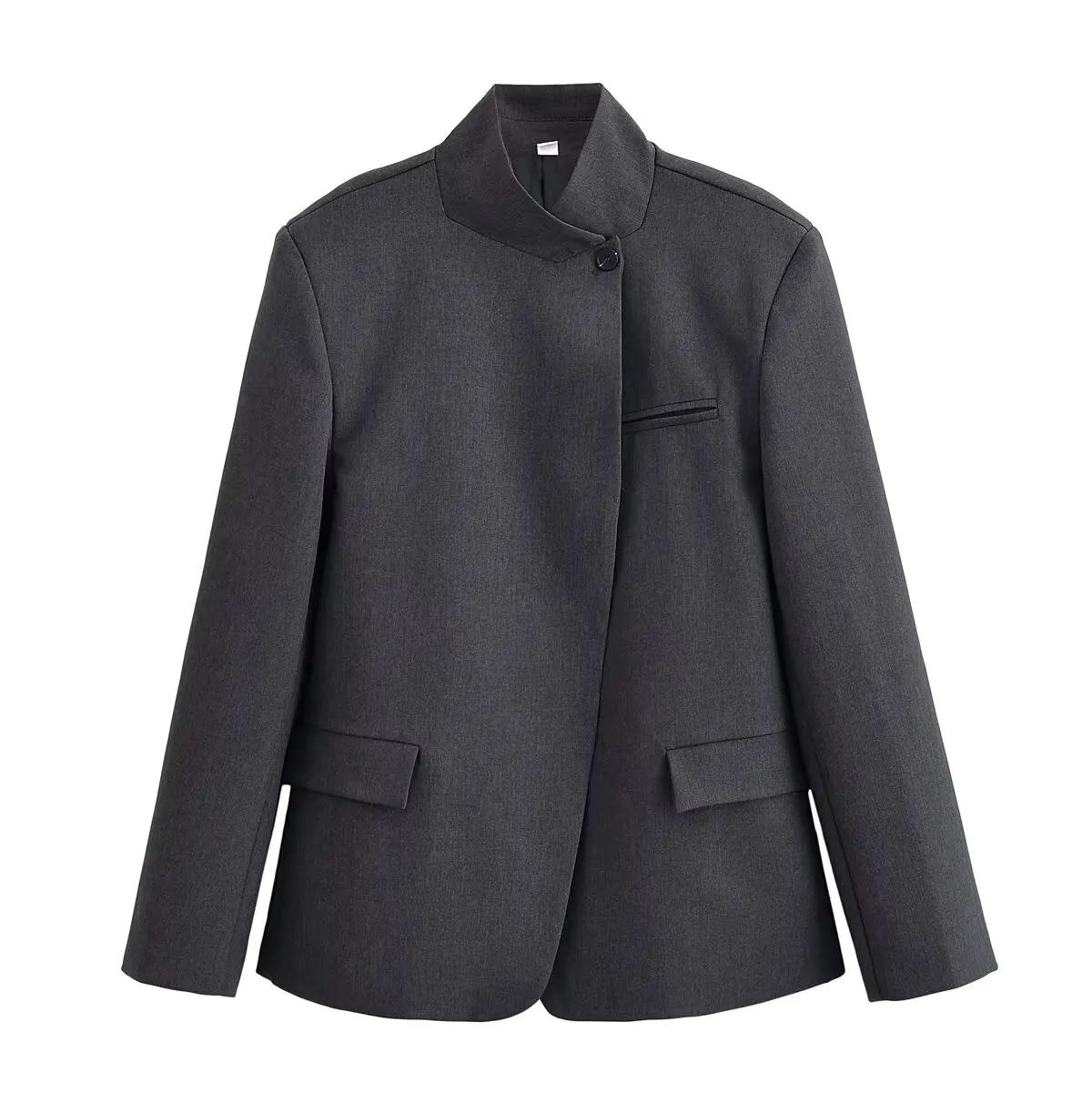 AOMO 패션 여성 솔리드 디자이너 블레이저 사이드 버튼 포켓 긴 소매 여성 우아한 정장 QN24