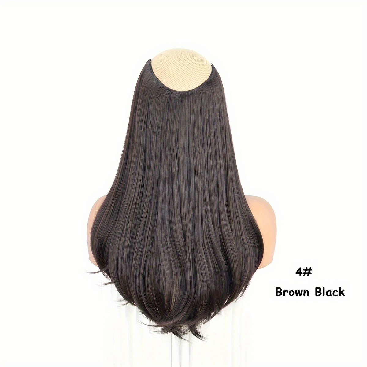 TEMU 여성용 우아한 V-Shape 클립인 헤어 익스텐션 - 긴, 직선 합성 헤어피스, 4개의 안전 클립, 자연스러운 느낌, 헤어 클립