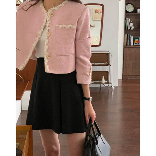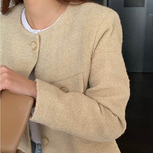 슈팅스타 / 심플 라운드넥 d로잉 크롭 트위드자켓