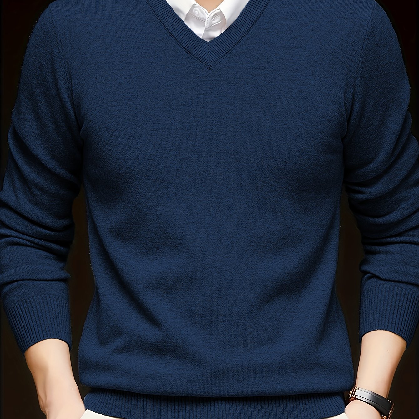 TEMU 남성용 슬림핏 V넥 스웨터 - 긴 소매 리브 텍스처 풀오버, 단색 비즈니스 캐주얼 겨울 니트웨어, 가을 & 겨울용 다용도 레이어링 필수품, 니트 구조