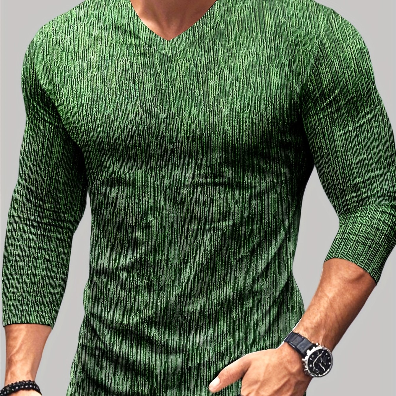 TEMU OBM 남성 슬림핏 긴팔 V넥 티셔츠 - 단색 캐주얼 셔츠, 중간 신축성 니트 원단, 세탁기 사용 가능, 사계절용 아웃도어 & 캐주얼 상의