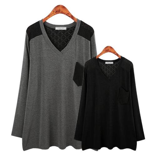 [허밍퍼플]밍퍼플 여성용 3611 크레 포켓 레이스T 빅사이즈 티셔츠 롱티 브이넥 V넥 긴팔 슬림 루즈핏 큰..