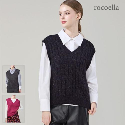 [로코엘라] 카렌 알파카 블렌딩 케이블 여성 니트 베스트