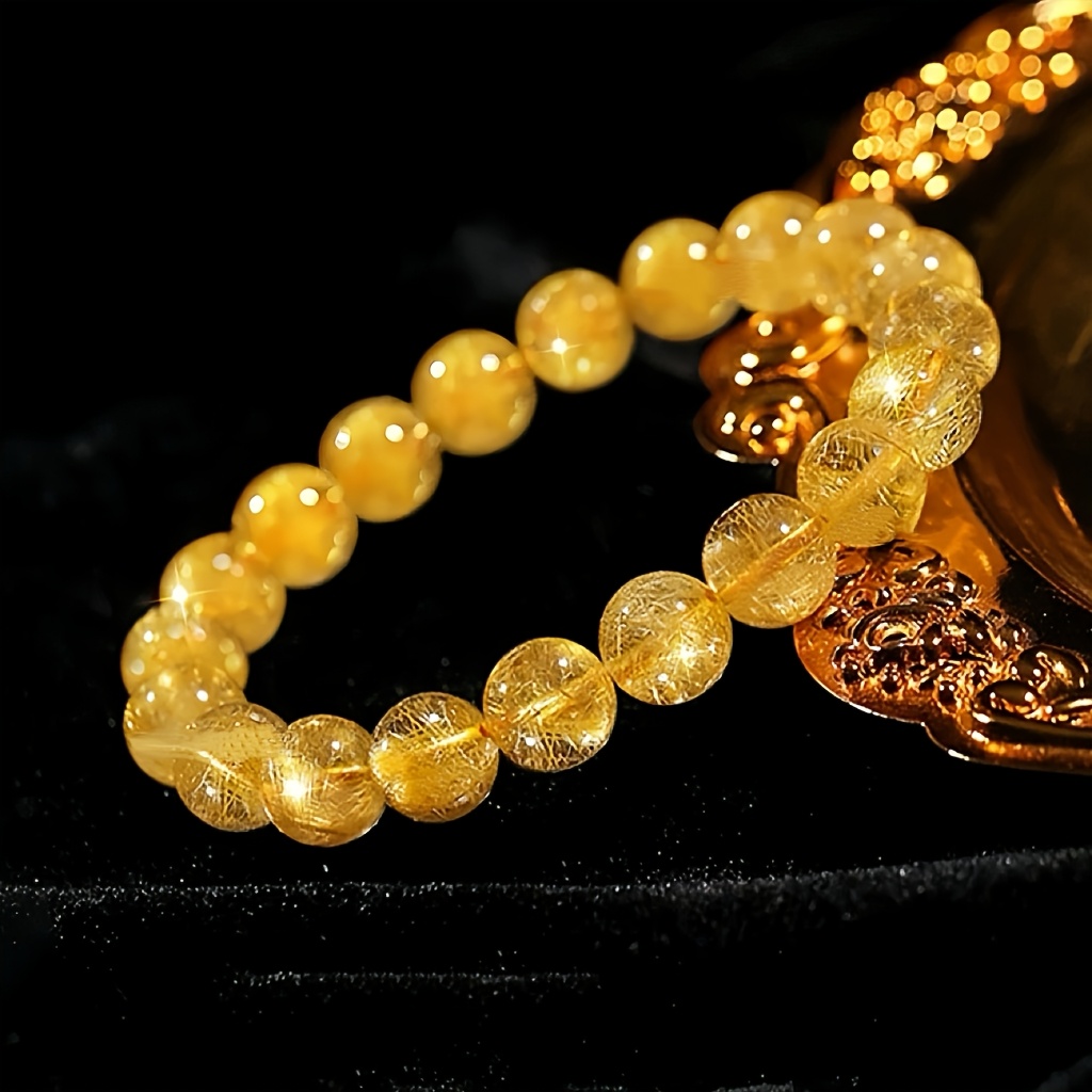 TEMU 장인들이 부를 만드는 팔찌를 만들고, 남녀를 위한 패셔너블한 선물로, 10-12mm 노란색 루틸레이티드 석영으로 제작되었으며, 합성 인조 액세서리로 친구를 격려하고, 추수감사절, 크리스마스 및 할로윈 선물로 적합합니다 (패턴은 무작위로 변동됩니다).