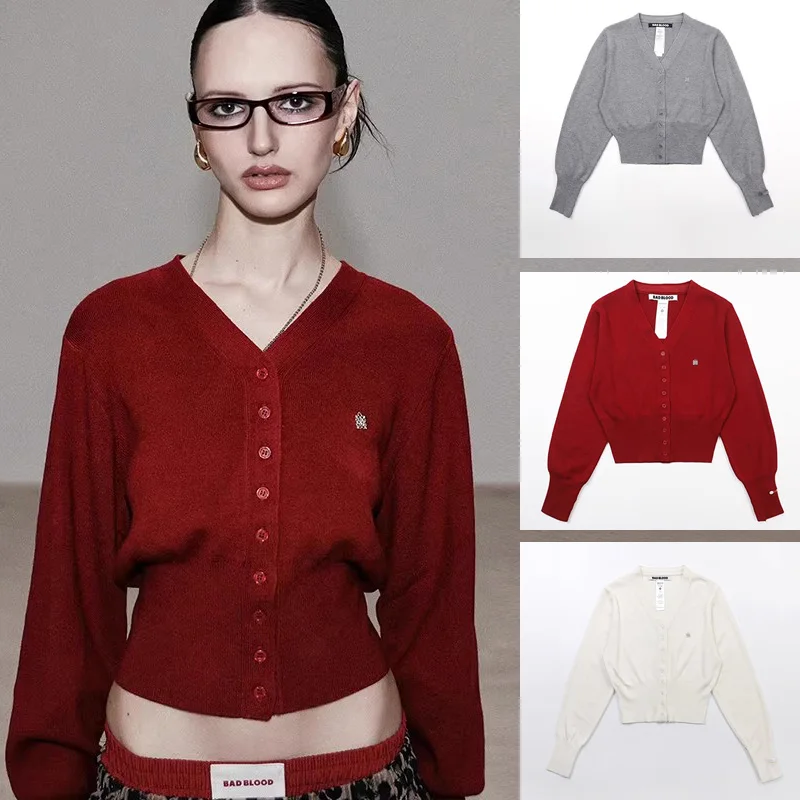 부드럽고 피부 친화적인 얇은 울 니트 오픈 가디건 여성용 한국 버전 브이넥 루즈 숏 스타일 소형 아우터웨어 스웨터 재킷 탑