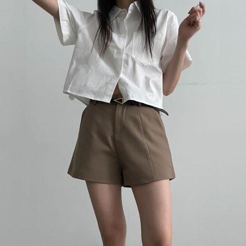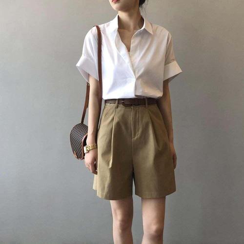 쪼예 소매롤업 언발 히든버튼 카라 반팔 셔츠
