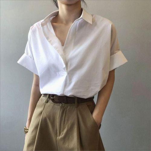[에이치플러스몰]남방 여자셔츠 블라우스 롤업셔츠 반팔 화이트 여름