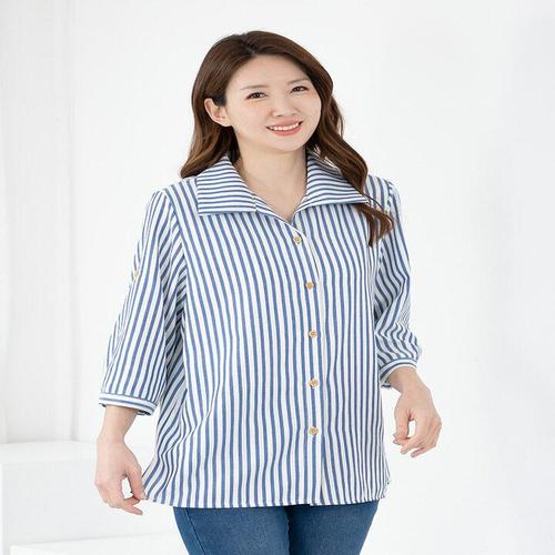엄마옷 면남방 7부 스트라이프 롤업 604BNM011 중년여성/50대/60대/마담/빅사이즈/할머니옷