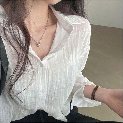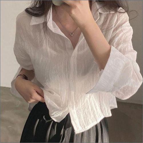 [에이치플러스몰]얇은 블라우스 소매 여름 롤업 시스루 루즈핏 남방 여자 3컬러