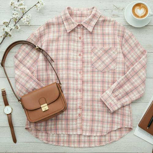 여성 카라넥 베이직 체크 롤업 셔츠 남방 DGB-WBL-5103-핑크
