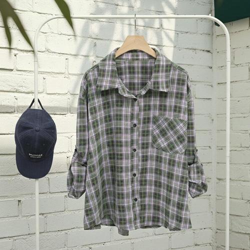 여성 카라넥 베이직 체크 롤업 셔츠 남방 DGB-WBL-5103-바이올렛