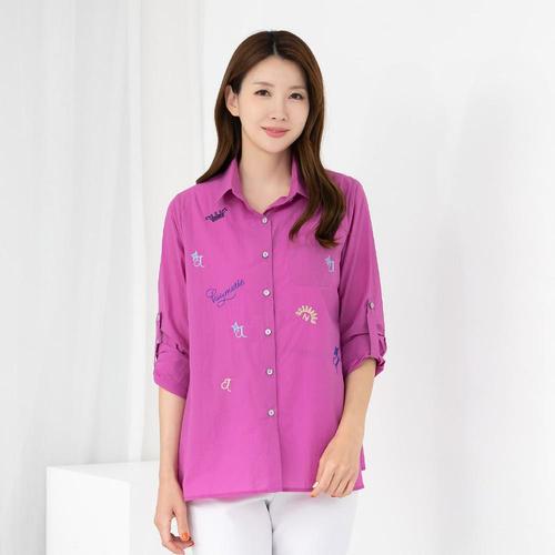 엄마옷 롤업 자수 셔츠형 면카라자켓 614BNM439 중년여성/50대/60대/마담/빅사이즈/할머니옷