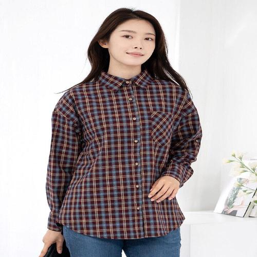 여성 체크 블라우스 패턴 셔츠 국내생산 카라넥 와이셔츠 남방 루즈핏 롱 기본 빅사이즈 10가지 디자인 55 66 77 심플 베이직 무지 오피스룩 출근룩 롤업 캐주얼 버튼 체크무늬