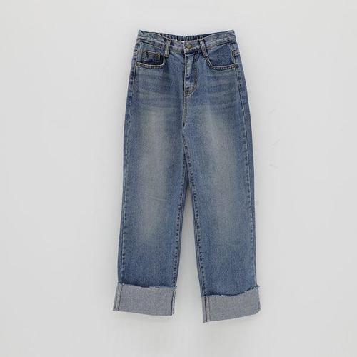 [에이치플러스몰]여성하의 롤업 청바지 여자와이드롤업청바지팬츠