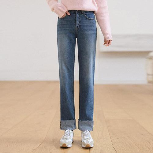에브리룩 양털 롤업 라인 기모 뒷밴딩 데님 청바지(S-2XL)