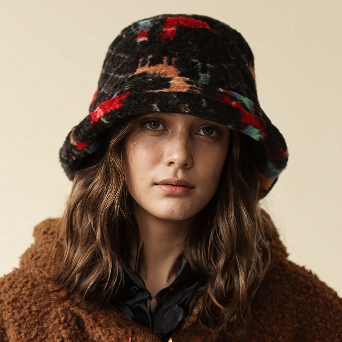 TEMU 1개 여성용 랜덤 패턴 플러시 버킷햇, 신상 가을/겨울 스타일, 따뜻하고 가벼운 패셔너블 멀티버킷햇, 큰 머리둘레로 얼굴을 작게 보이게 하는 우아한 디자인, 데일리용으로 적합|벙거지모자