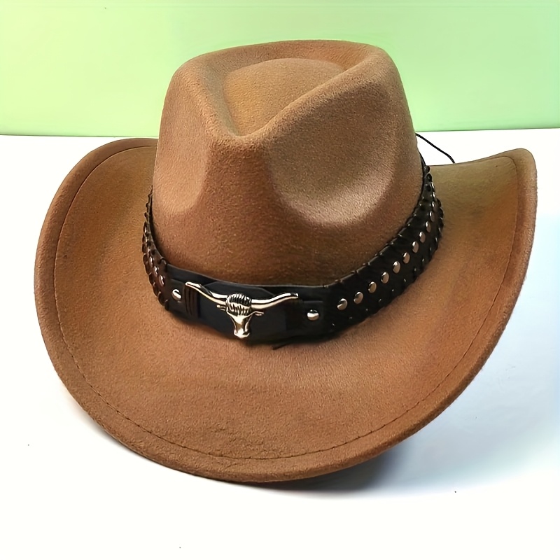TEMU 1pc 스타일리시한 서부 모자, 버클 및 소의 머리 디자인 - 봄, 여름, 가을 야외 활동용 넓은 브림 페도라 | 통기성 및 내구성 합성 소재, 남성 및 여성용 안전한 핏, 여성에게 적합|여름모자