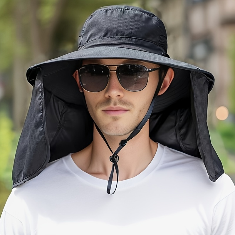 TEMU 남녀 공용 여름 버킷햇 1개. 넓은 챙과 넥 플랩이 특징입니다. 통기성이 좋은 단색 모자이며, 클립 버튼이 달려 있어 낚시, 하이킹, 해변 여행 등 야외 활동에 적합합니다.|벙거지모자|여름모자