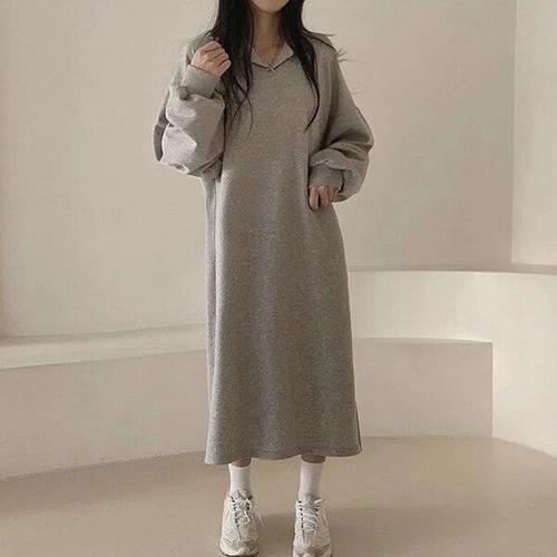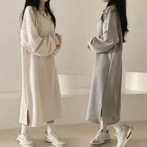 [굿쇼핑몰_의류]베이직 여유핏 2컬러 여성 기모 긴팔 롱 원피스