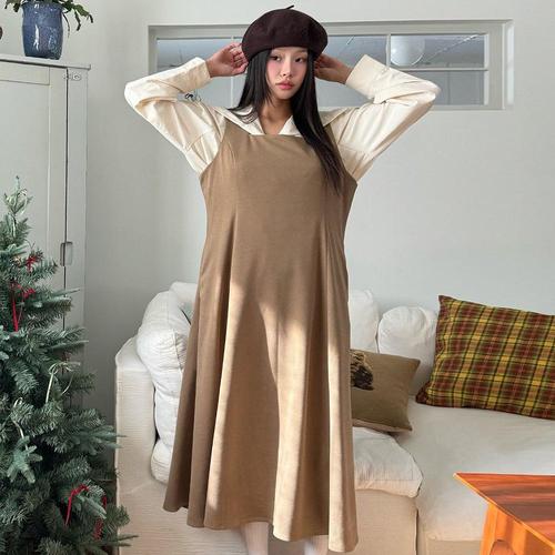 [신상오픈런]여자 겨울 골덴 스퀘어넥 박시 속기모 나시 롱원피스